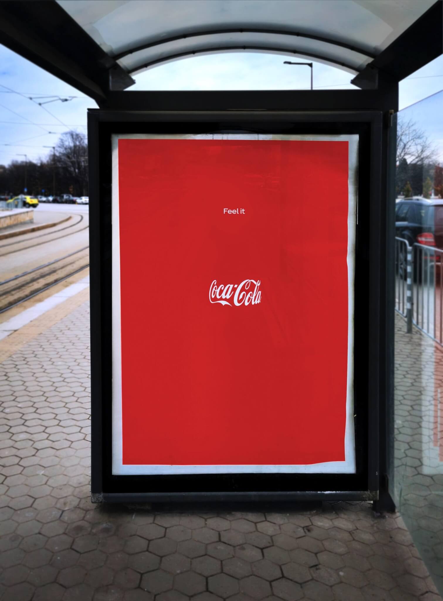 No outdoor como pode ver em baixo, apenas existe o logotipo da marca e a frase “feel it”, mas a tua mente insiste em ver o formado da garrafa.
