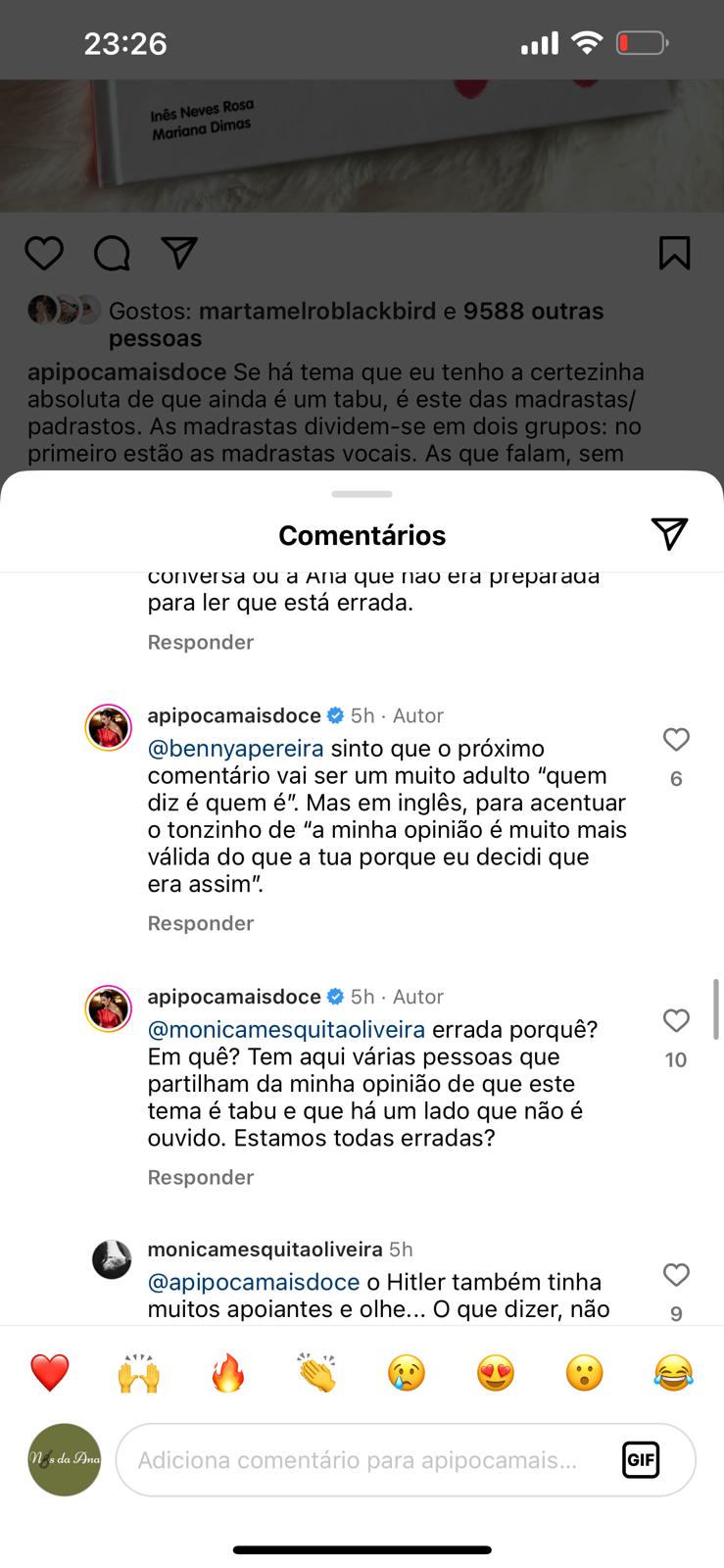 Ana Garcia Martins não hesitou em responder a Benedita, iniciando assim uma troca de palavras entre as duas figuras públicas. A influenciadora digital afirmou: “Grata pela dica. Quando tiver vontade de ouvir comentários pretensamente pedagógicos, carregados de superioridade moral, como este, pensarei no livro. Até lá, e também graças a isto, mantenho a minha teoria de que o mundo ainda não está preparado para esta conversa”.