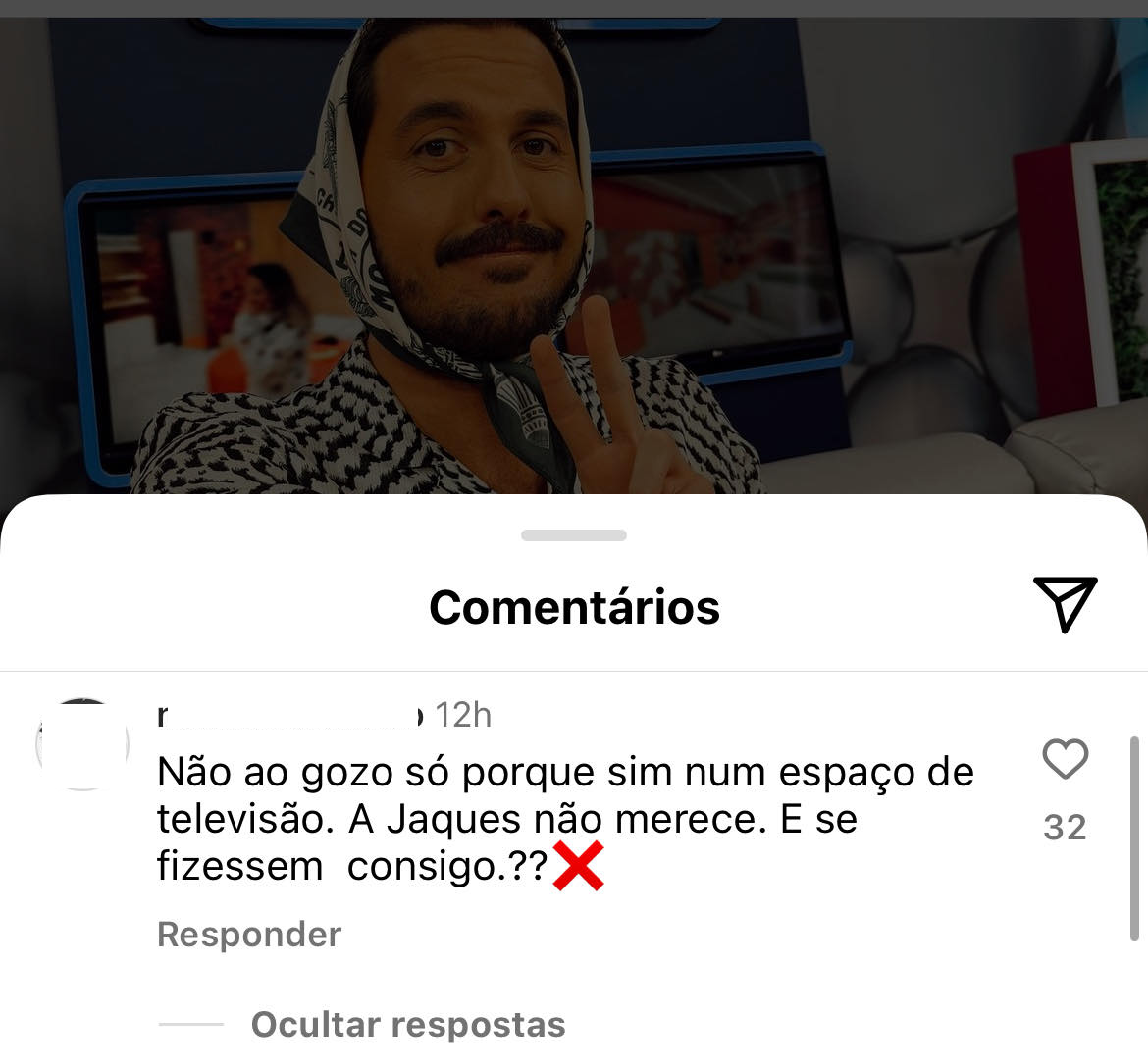 Uma seguidora escreveu: “Realmente não percebo, deve respeitar as outras pessoas se quer ser respeitado. Até gostava de si, mas…”, enquanto outra questionou: “Não ao gozo só porque sim num espaço de televisão. A Jaques não merece. E se fizessem consigo.??❌”.