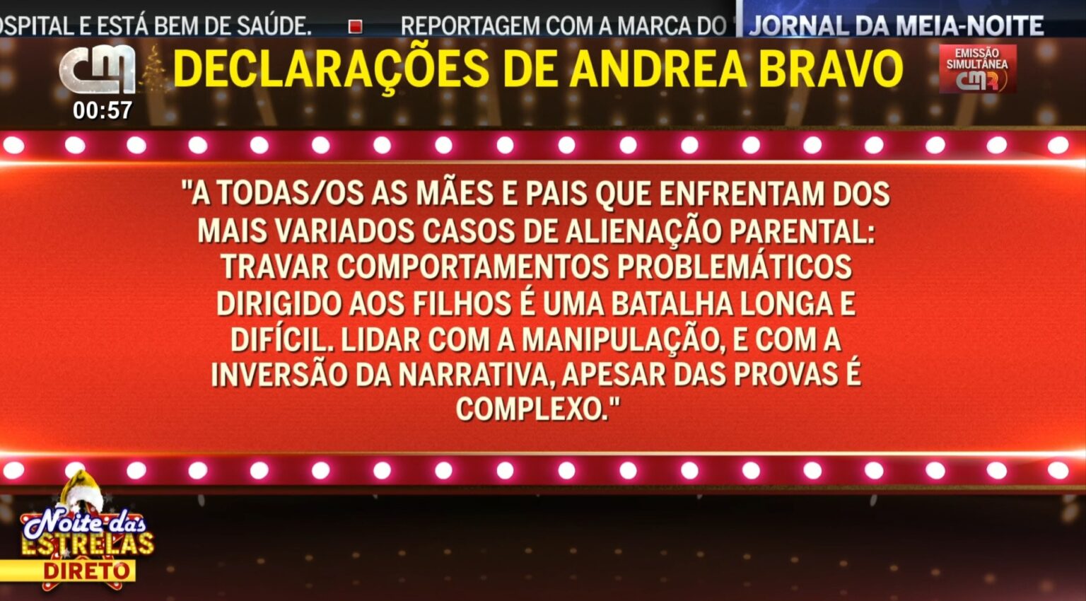 A mensagem de Andrea foi lida no programa, e nela pode-se encontrar o seguinte: “Para todas as mães e pais que lidam com a alienação parental: confrontar comportamentos prejudiciais dirigidos aos filhos é uma batalha longa e cheia de obstáculos. Enfrentar a manipulação e a alteração da verdade, mesmo quando existem provas claras, é uma tarefa difícil.”