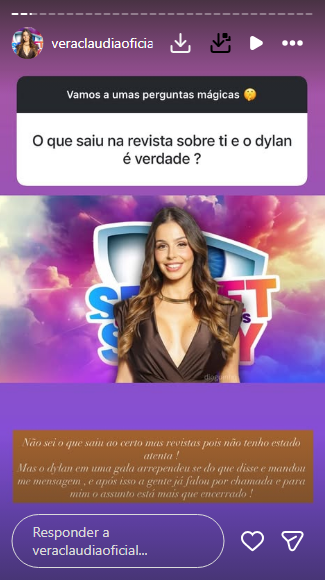 Vera decidiu quebrar o silêncio depois de deixar a casa, numa altura em que começaram a surgir várias especulações nas revistas sobre a sua relação com Dylan. Confrontada por um seguidor nas redes sociais, a ex-concorrente garantiu que não fazia ideia do que tinha sido noticiado, mas aproveitou a pergunta para esclarecer o que realmente aconteceu entre os dois.