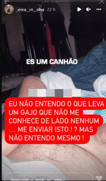 Nesta sexta-feira, dia 18 de Fevereiro, Érica Silva recebeu uma mensagem privada de um seguidor onde lhe mostrava o seu órgão genital.