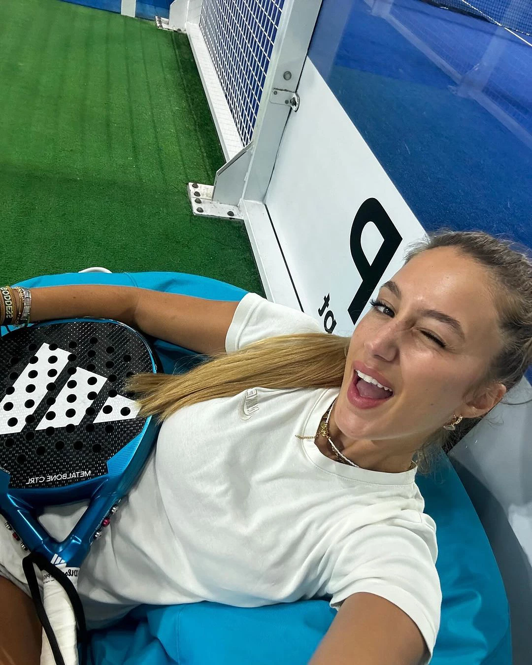 Na foto mais recente, a jovem é vista em um campo de padel, um desporto praticado pelo seu ex-namorado.