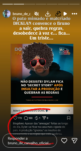 Logo no início da publicação, o ex-líder leonino dirigiu-se a Dylan com dureza: “O miúdo arrogante, o tal Dicklan, convence o Bruno a desistir, quebra regras, desafia a Voz e… permanece como se nada fosse. Lastimável”.