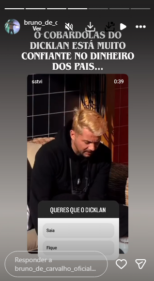 Sem hesitar, comentou: “O programa está um estrondo… só se for de tanta brutalidade junta. A burrice está no topo! E o pobre coitado do Dicklan acha-se intocável porque acredita no dinheiro dos pais”.