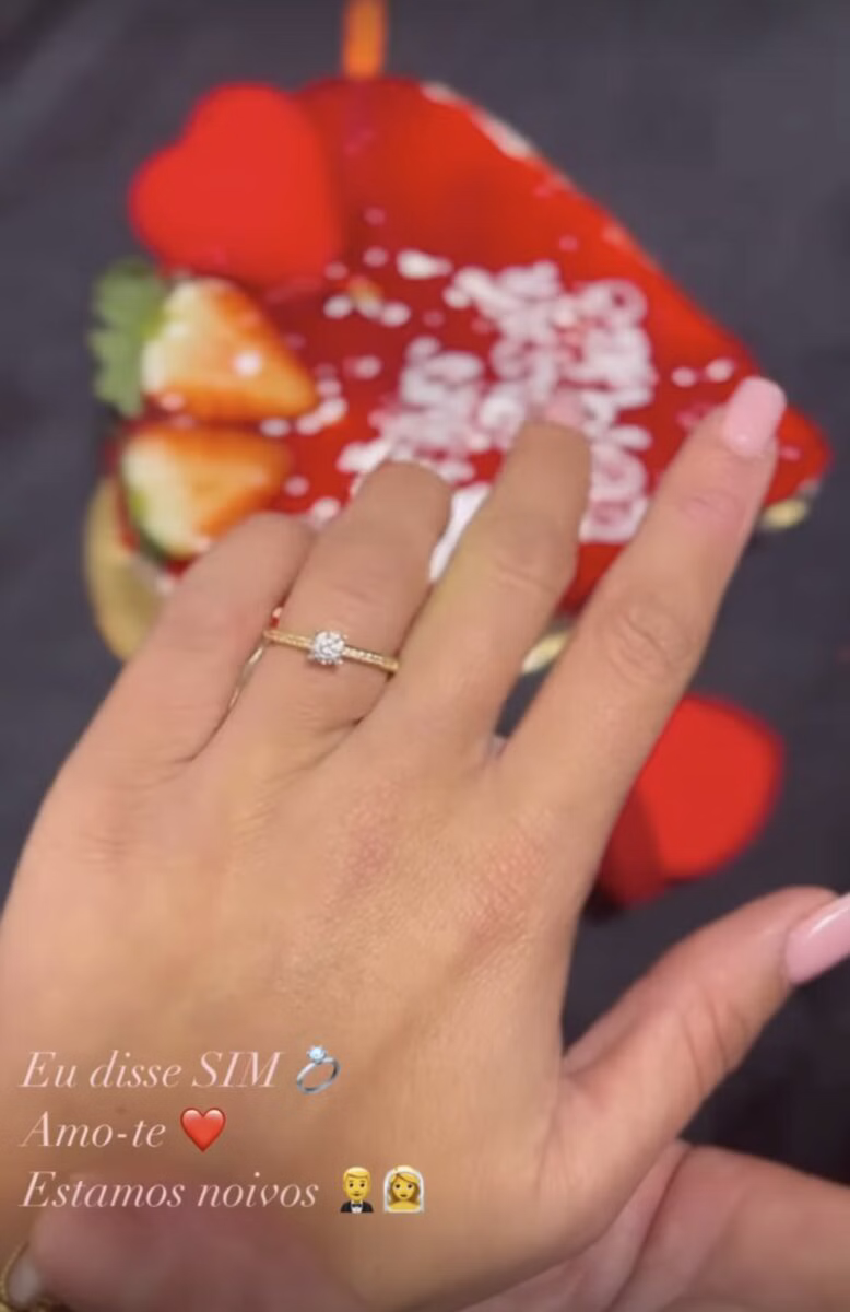 A noiva também celebrou a ocasião especial nas redes sociais, partilhando a mesma alegria: “Eu disse ‘sim’. Amo-te. Estamos noivos!”