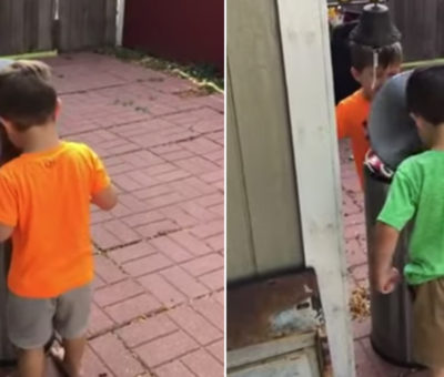 Ler maisDuas crianças viram num caixote do lixo um divertimento e foram filmadas a brincar com ele, só que o jogo consistia em dar com a tampa na cara um do o