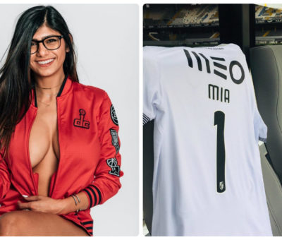 A atriz para filmes de adultos, Mia Khalifa, que expôs o seu apoio à equipa vimaranense que irá defrontar o Arsenal amanhã do Estádio Dom Afonso Henri