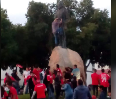 Ler maisA festa dos benfiquistas em Beja ficou marcada pela queda de um adepto do Benfica, que tentou subir ao cima da estátua do Bandeirante, caindo desampar