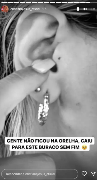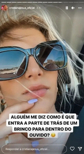 “Alguém me diz como é que entra a parte de trás de um brinco para dentro do ouvido? Qual é a probabilidade? É que só a mim. Gente não ficou na orelha, caiu para este buraco sem fim”, completou.
