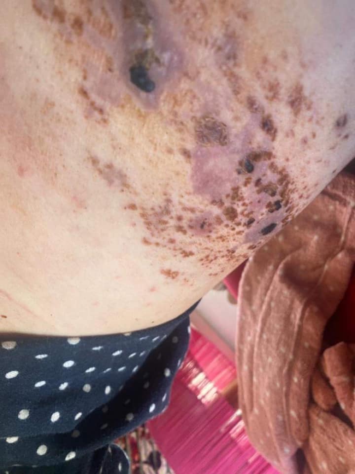“As dores são horríveis. A VACINA É A MELHOR FORMA DE EVITAR MUITO SOFRIMENTO“, acrescentou na publicação onde revela fotografias chocantes.