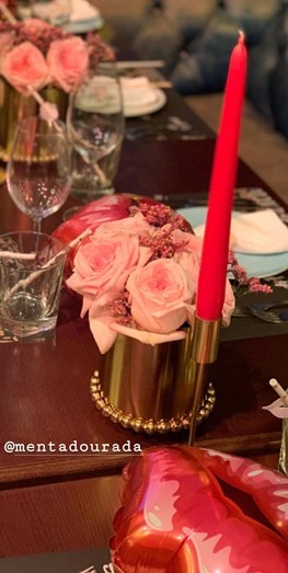 Velas, flores e um prato especial para a noite foi o que mais se destacou mas houve espaço para uns objetos mais atrevidos que também fez questão de mostrar, um brinde feito de shots também é mostrado no vídeo que se segue abaixo.