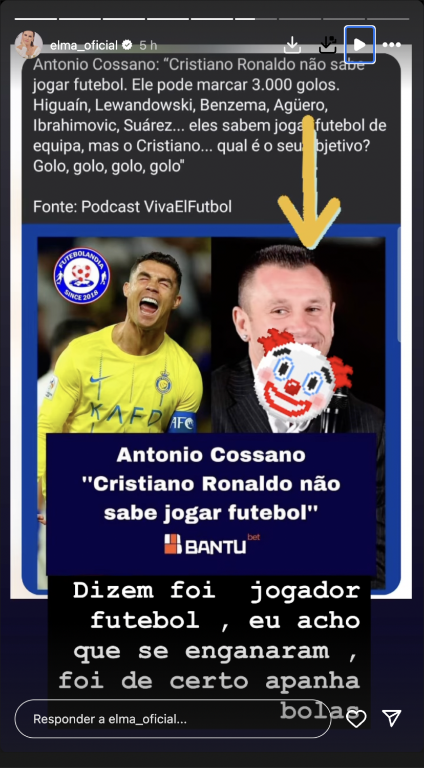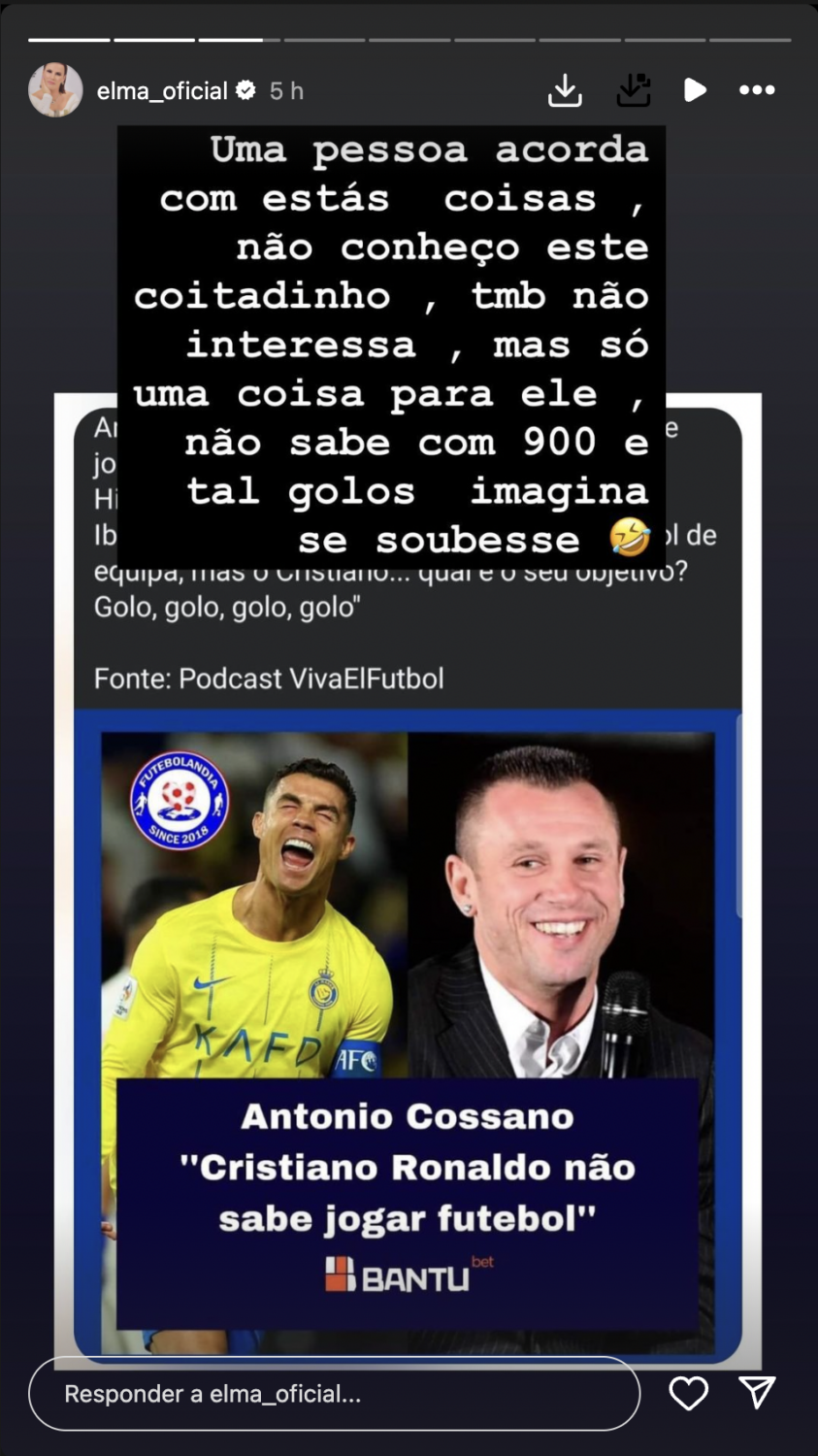 A empresária deixou de seguida um ‘recado’ ao ex-jogador italiano: “Não sabe com 900 e tal golos, imagina se soubesse”.