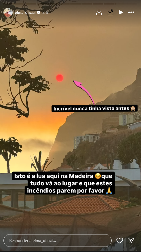 Num dos Insta Stories podemos ler: “Incrível nunca tinha visto antes. Isto é a lua aqui na Madeira”.