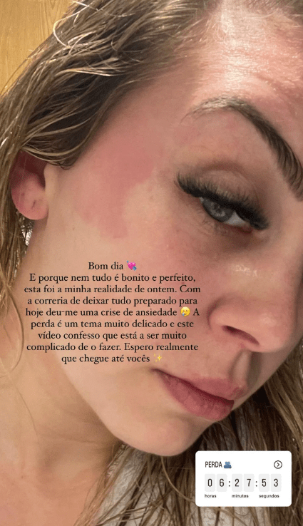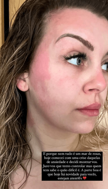 Sem filtros, a ex-concorrente do “Big Brother” exibiu uma mancha vermelha no rosto, devido a uma crise de ansiedade.