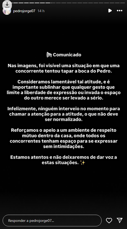 Poucas horas depois, a família de Pedro Jorge quebrou o silêncio e reagiu em comunicado, classificando a atitude como “lamentável”: