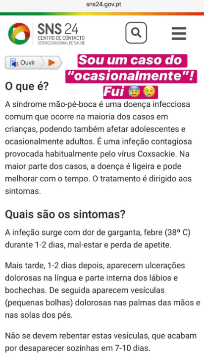 “Trata-se de uma doença infecciosa que ocorre na maioria dos casos em crianças, podendo afetar adolescentes e ocasionalmente adultos”, começa-se por ler nas explicações partilhadas por Fanny.