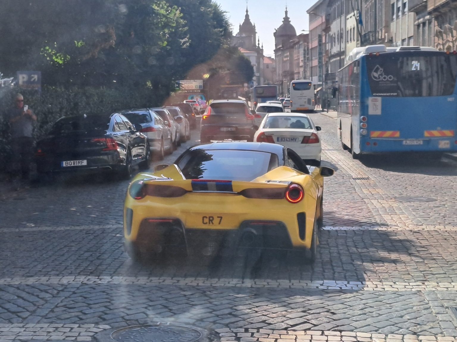 Na cidade de Braga foi avistado um Ferrari 488 Pista com matrícula “CR7”, uma referência óbvia ao craque português Cristiano Ronaldo. A presença do supercarro não passou despercebida e as imagens rapidamente chegaram às redes sociais, através do grupo ‘Carspotting Portugal’ no Facebook.