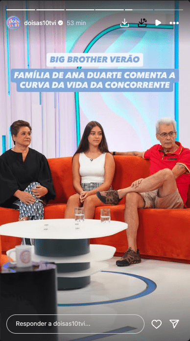 Neste dia 27 de Agosto, quarta-feira, os pais e filha da concorrente estiveram à conversa com Cristina Ferreira e Cláudio Ramos no “Dois às 10”.