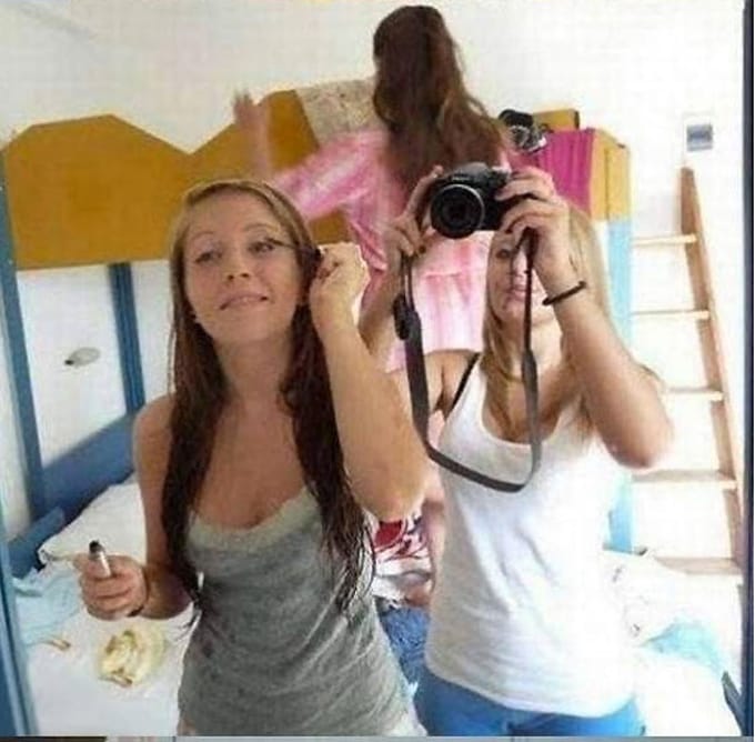 Na primeira foto a rapariga de traços Asiáticos parece muito inocente em frente ao espelho, mas veja o quão atrevida é na seguinte imagem…. Na 2ª foto a rapariga enviou uma foto do bumbum a um amigo, mas na realidade não é o bumbum, mas as suas pernas. NA 3ª foto vai ter de olhar duas vezes. A jovem que aparece na 4a foto parece ter umas marufas enormes, mas na realidade são os seus joelhos…