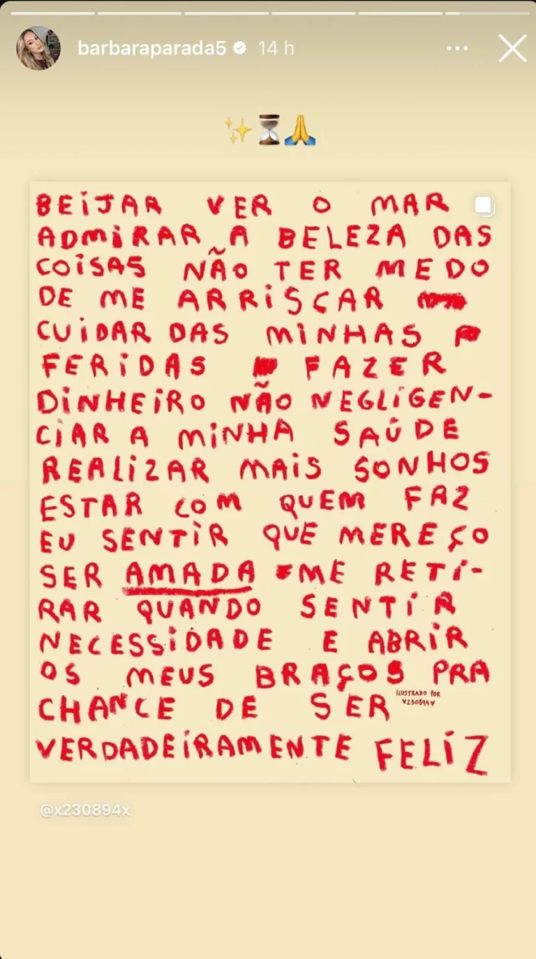 “Estar com quem me faz sentir que mereço ser amada […] abrir os braços para a chance de ser verdadeiramente feliz”.