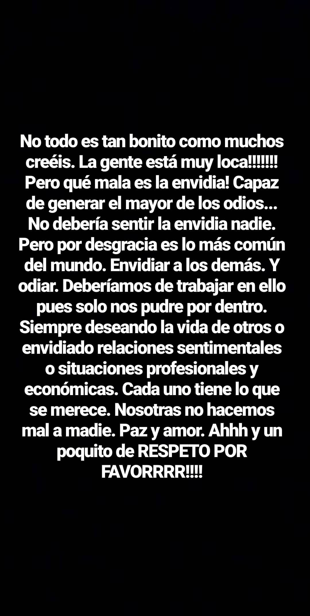 No instagram da irmã da modelo espanhola, foram publicadas as mensagens que ambas receberam e ainda desabafaram.