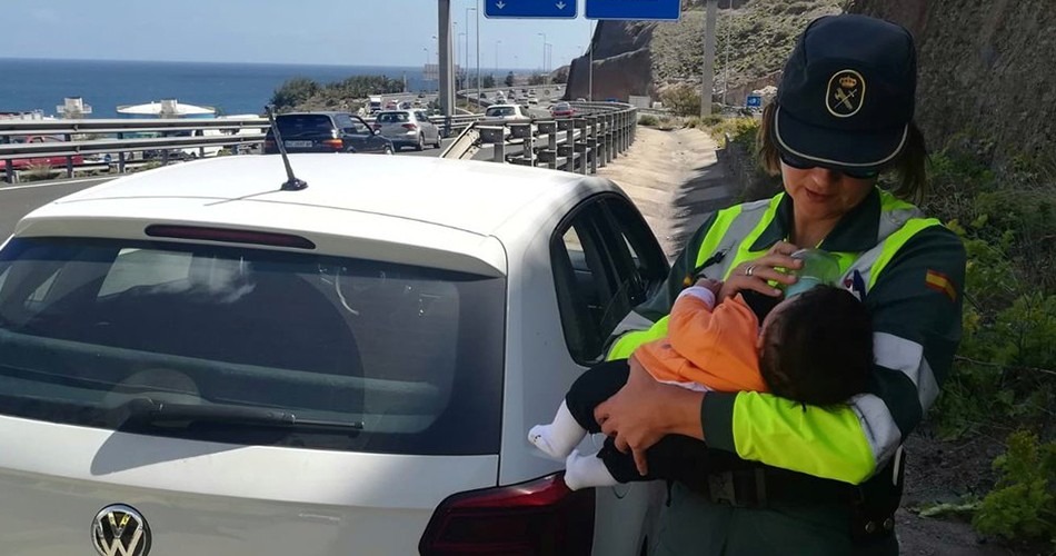 “O seu papá tinha sofrido um enfarte enquanto conduzia e a sua mamã estava nervosa. A nossa colega da divisão de trânsito da Guardia Civil de Las Palmas não pensou duas vezes em tomar conta do bebé e alimentá-lo”, pode ler-se na legenda.