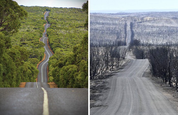É notícia por toda a parte do mundo e surgem agora imagens do antes e depois de algumas áreas afetadas pelas chamas.