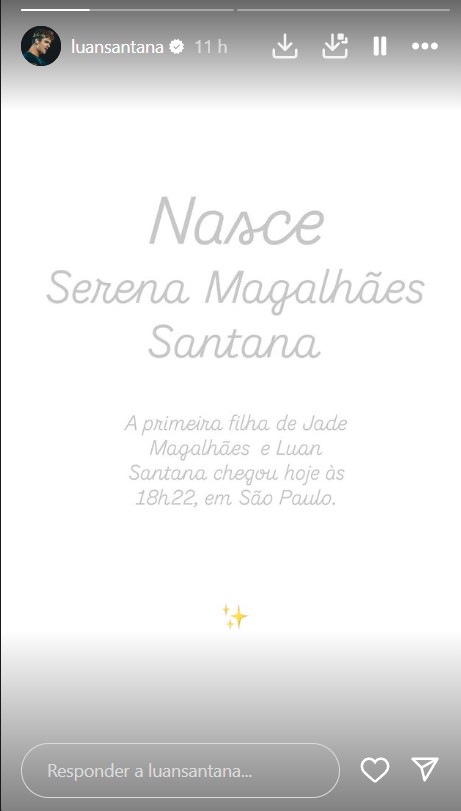 Luan Santana partilhou com seus seguidores a chegada de sua filha, Serena Magalhães Santana, em um comunicado nas redes sociais.