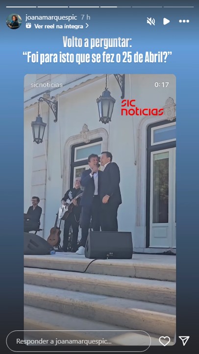 A humorista Joana Marques, conhecida pela rubrica Extremamente Desagradável, não deixou passar o momento em branco. Através do Instagram, partilhou uma imagem do dueto e ironizou: