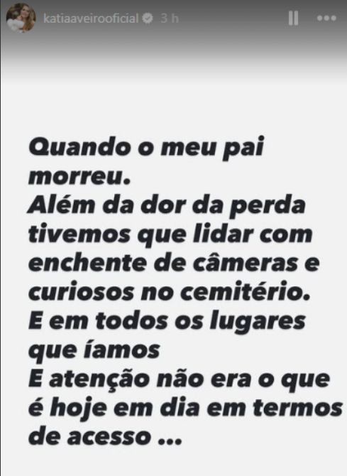 Katia recordou o funeral do pai, há quase 20 anos, descrevendo como a dor da perda foi agravada pela forma como os media e parte do público trataram a sua família. Para ela, o respeito pela privacidade e pela dor alheia continua a ser ignorado — agora, mais uma vez, com o nome de Cristiano a ser usado para alimentar polémicas.