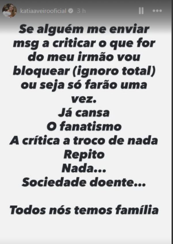 Perante a onda de críticas à ausência de Cristiano Ronaldo no funeral de Diogo Jota e André Silva, Katia Aveiro decidiu quebrar o silêncio. Usando a sua conta de Instagram, a irmã do capitão da Seleção Nacional deixou um desabafo carregado de emoção e indignação.
