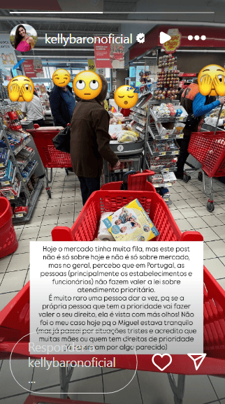 Kelly Baron acrescentou que é raro alguém dar a vez e que, muitas vezes, quem tenta exercer esse direito acaba por ser mal visto. “Não foi o meu caso hoje porque o Miguel estava tranquilo, mas já passei por situações tristes e acredito que muitas mães ou quem tem direitos de prioridade já passaram por algo parecido”, concluiu.
