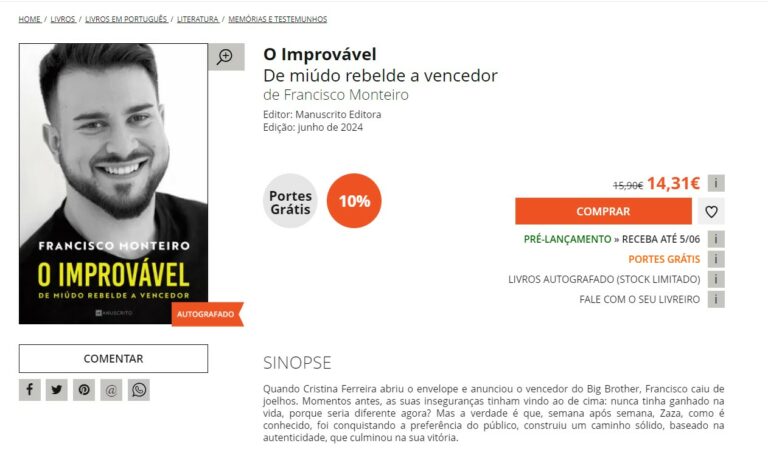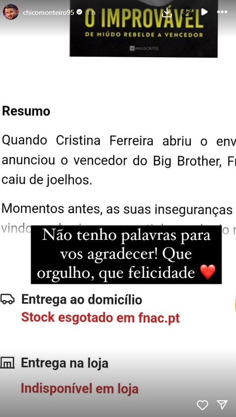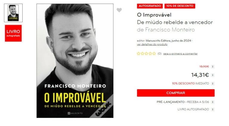 O livro de Francisco Monteiro, “O Improvável: De miúdo rebelde a vencedor”, está esgotado na Fnac.