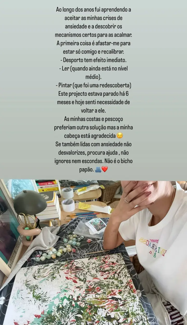 “Já há vários anos que aprendi a aceitar as minhas crises de ansiedade e a descobrir maneiras de acalmá-las“, começou por escrever nas stories.