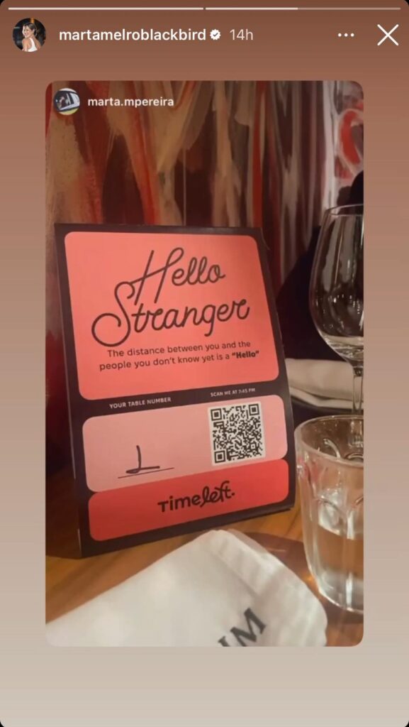 Na história seguinte, podemos ver um cartão da aplicação Time Left que diz: “Olá estranho. A distância entre ti e a pessoa que ainda não conheces é um ‘Olá’”. Parece uma forma divertida de abordar os encontros às cegas.