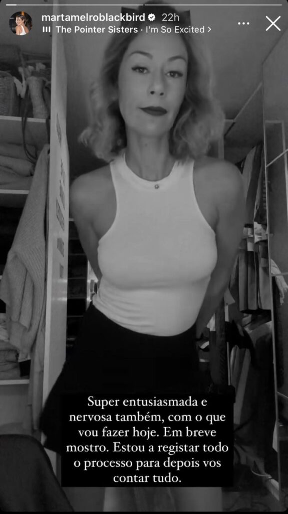 A atriz Marta Melro estreou-se nos encontros às cegas nesta quarta-feira, 1 de novembro, e confessou nas suas redes sociais estar entusiasmada e nervosa. Ela disse: “Super entusiasmada e nervosa também, com o que vou fazer hoje. Em breve mostro. Estou a registar todo o processo para vos contar tudo”.