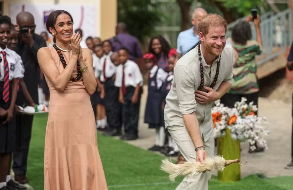 O príncipe Harry e Meghan Markl apresentaram-se na Nigéria muito próximos, cumplices e apaixonados.