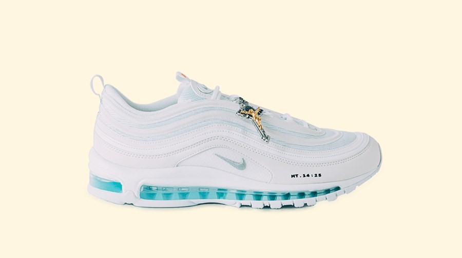A marca reformulou os “Nike Air Max”, preenchendo a sola transparente com água do rio Jordão, dando o nome de “sapatos de Jesus”.