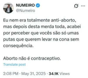 Numeiro ALVO DE QUEIXA no Ministério Público por “discurso de ódio” contra mulheres!