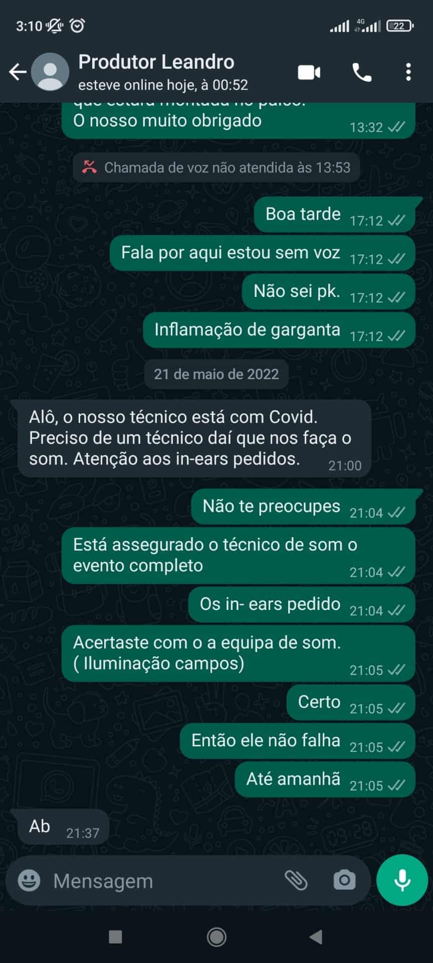 Veja a troca de mensagens: