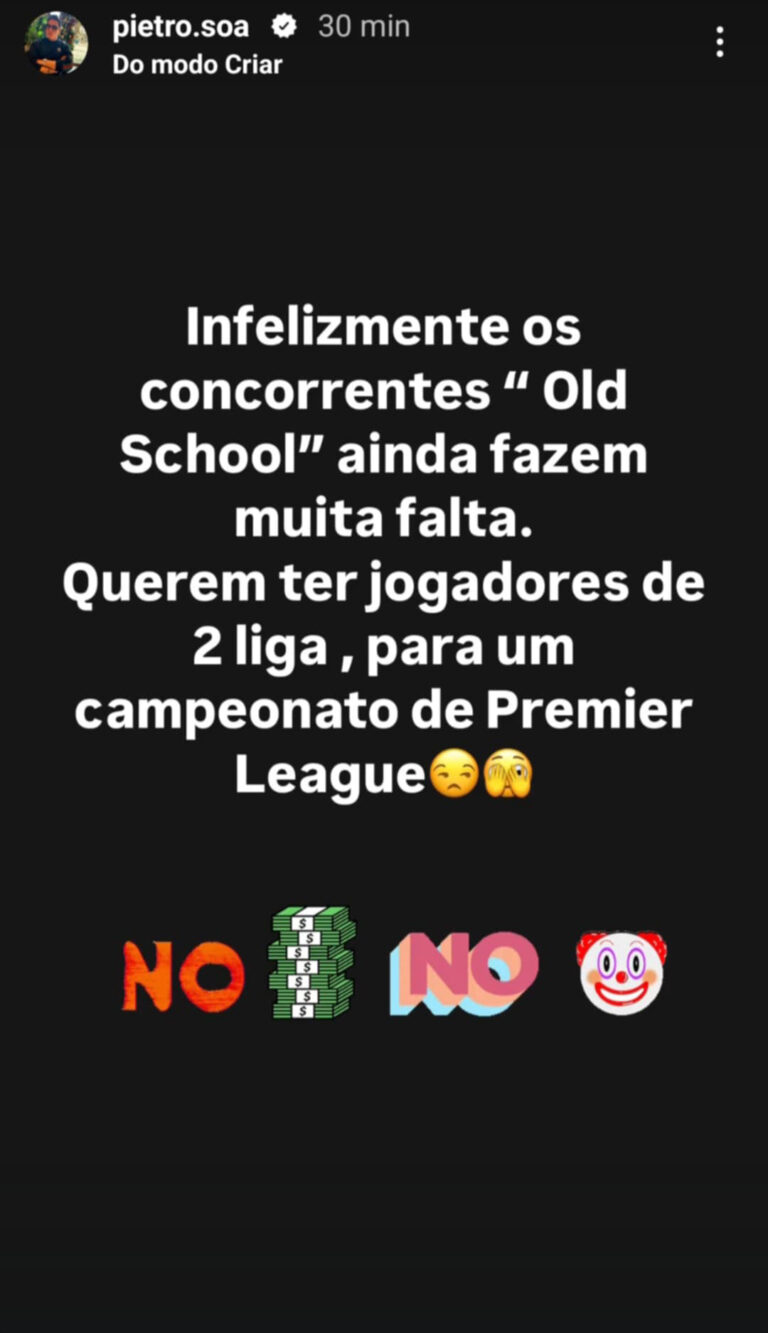 O ex-participante também lamentou a falta de competitividade e intensidade, mencionando que as discussões entre os concorrentes são superficiais e sem substância, comparando o atual grupo a “jogadores de 2ª Liga” em um campeonato de elite.