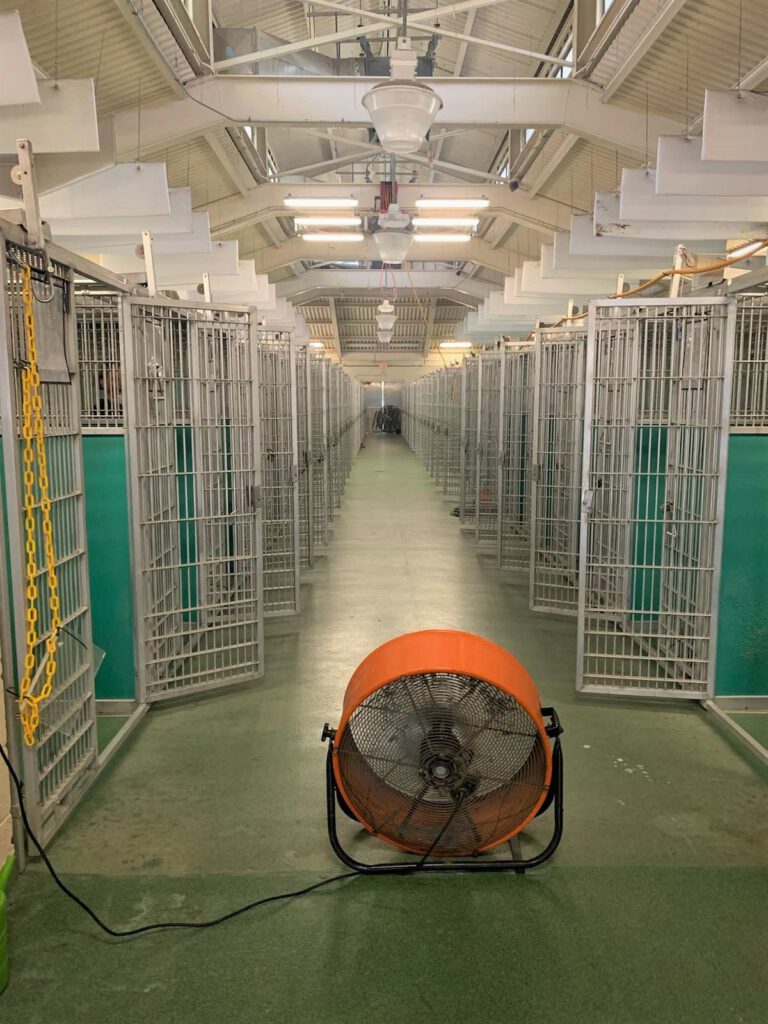 Este abrigo em especifico, tem três canis e os três acabaram por ser esvaziados devido às várias adoções neste tempo de isolamento social.