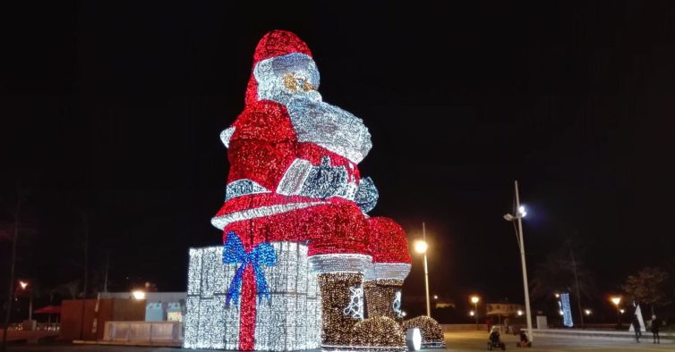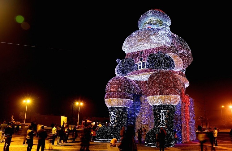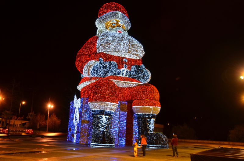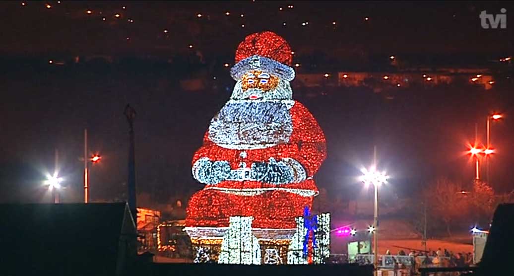 O maior Pai Natal do Mundo encontra-se vestido a rigor com 250 mil luzes LED e tem mais de 21 metros de altura, o que corresponde a cerca de 7 andares de um prédio.