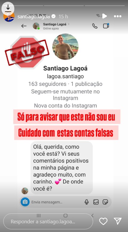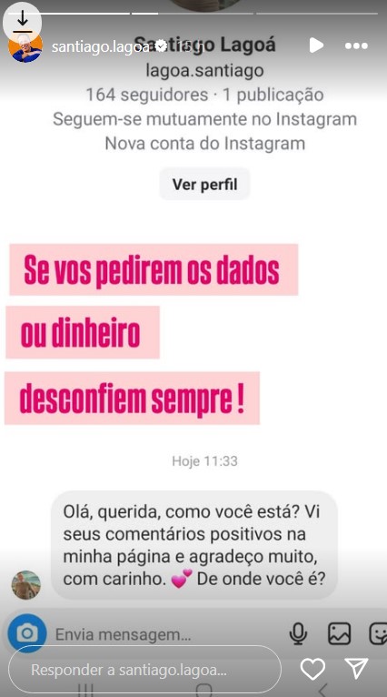 Através das suas redes sociais, Santiago Lagoá revelou que foi alvo de “roubo” de identidade.