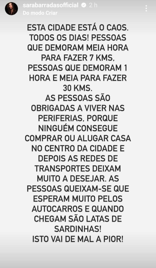 “As pessoas são obrigadas a viver nas periferias, porque ninguém consegue comprar ou alugar casa no centro da cidade e depois as redes de transportes deixam muito a desejar. As pessoas queixam-se que esperam muito pelos autocarros e quando chegam são latas de sardinhas! Isto vai de mal a pior!“, rematou.