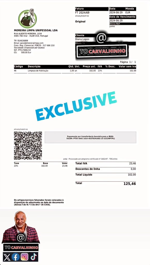Após seis meses de serviços de limpeza gratuitos em troca de promoção, a empresa ofereceu a Diana a continuação dos serviços. Parece que a comentadora concordou, mas o problema surgiu quando, segundo Carvalhinho, ela não terá honrado os pagamentos das faturas seguintes. Resultado? A “Moreira Limpa” sentiu-se traída e enviou as faturas em atraso diretamente para o Tó Carvalhinho.