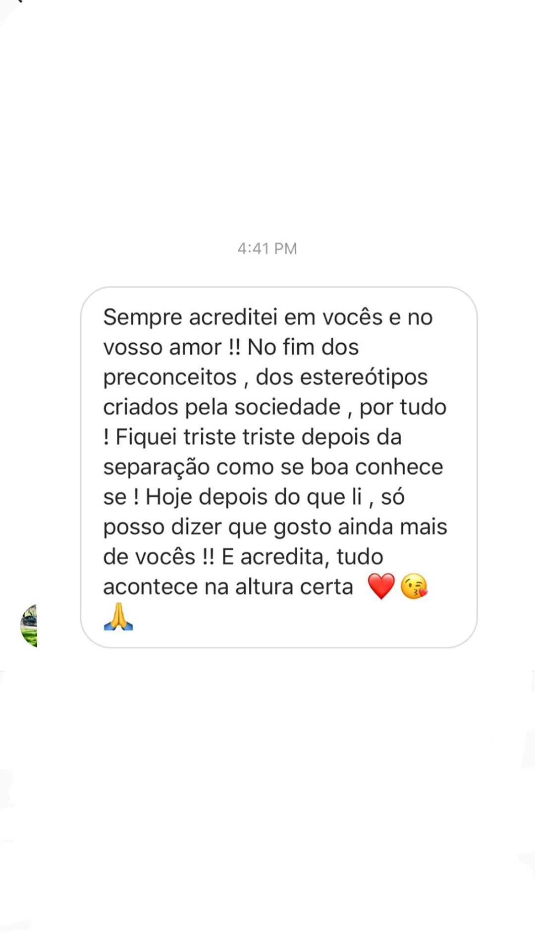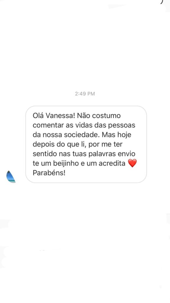Vanessa Martins, após revelar a suas dificuldades em engravidar, foi muito acarinhada pelos fãs, que lhe deixaram algumas mensagens como esta: